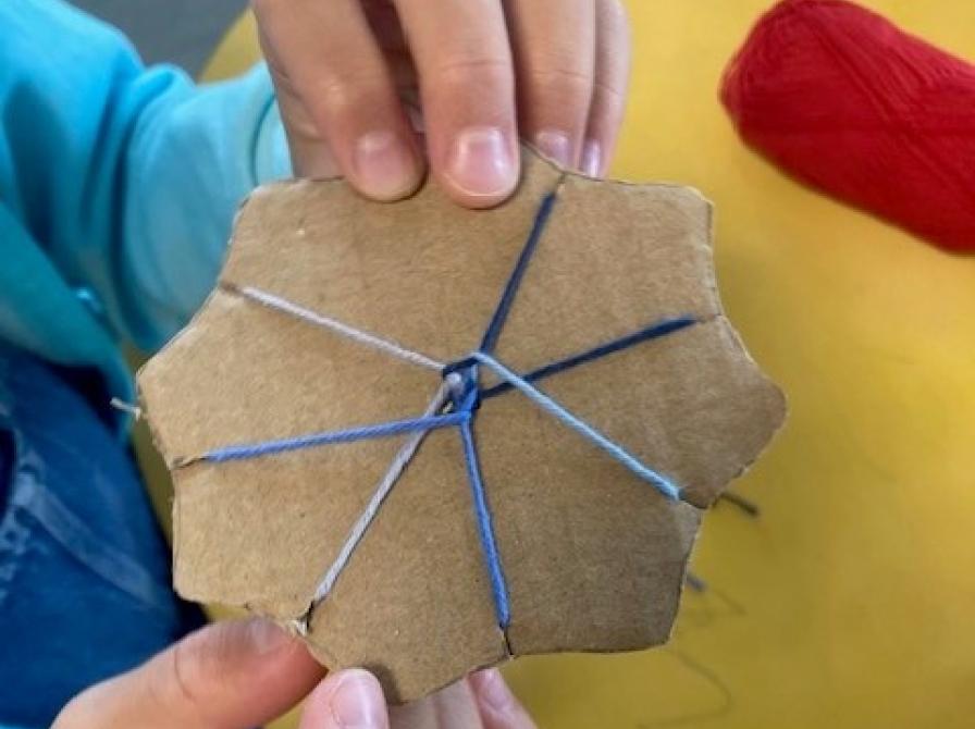 Kuhimo er en sjov fletteteknik og der flettes på denne krea-lørdag i bomuldsgarn.
